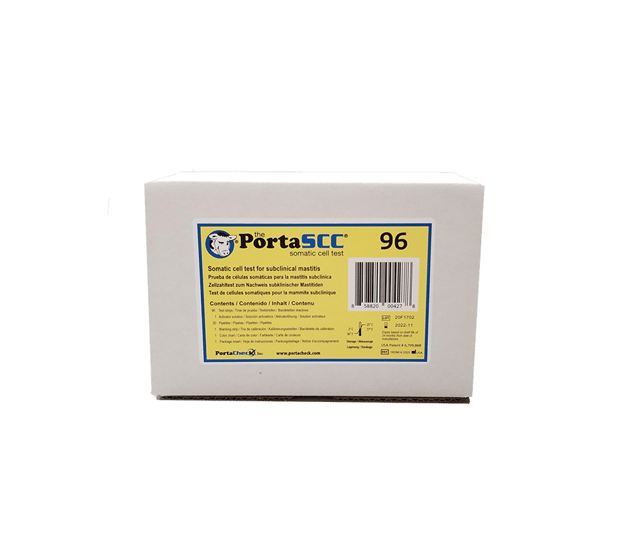 The PortaSCC 45-min. milk test is a somatic cell count (SCC) test for on-farm detection of subclinical mastitis in cows.
